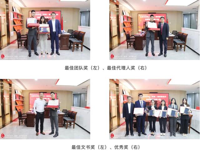 聚焦专业,实力较量,经过评审团评委们客观公正的评分,张其伦、赖红红实习律师获得“最佳团队奖”,张其伦实习律师获得“最佳文书奖”,张其伦实习律师获得“最佳代理人奖”,廖晓仪、卜德帅、何娉婷、李秋月实习律师及郑浩琪律师助理获得“优秀奖”。肖小文、闫磊、刘琛、沈继光律师为获奖实习律师们颁发奖杯、证书与奖品。