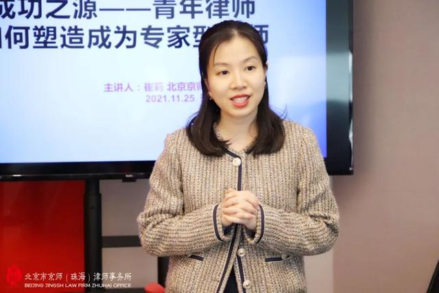讲座伊始,朱婷婷律师代表京师珠海律所对崔莉律师的到访表示热烈欢迎并感谢崔莉律师此次经验分享,为京师珠海律师特别是青年律师“传经送宝”,她表示,希望通过此次培训能让更多青年律师学会发现问题,总结自身的不足,全面提升自身的综合素质和业务能力,从基础业务开始打牢地基一步步进阶成为专业型律师。