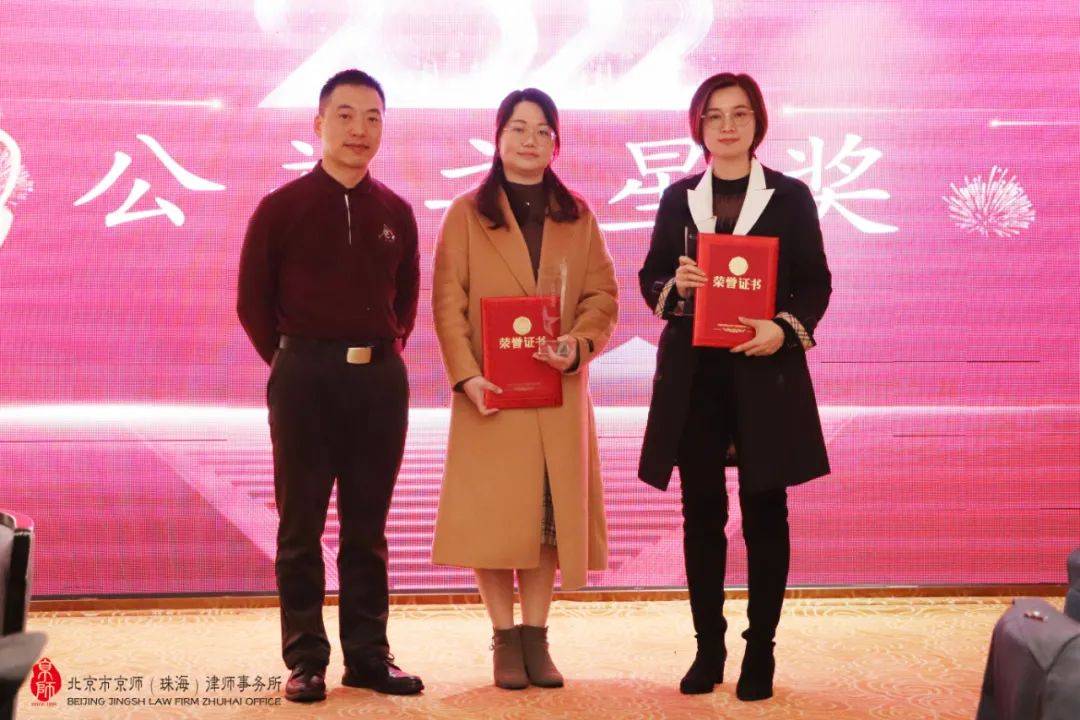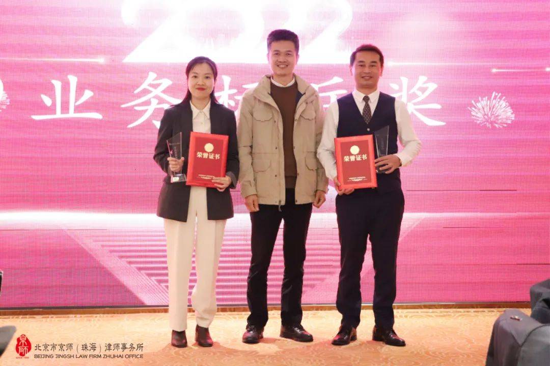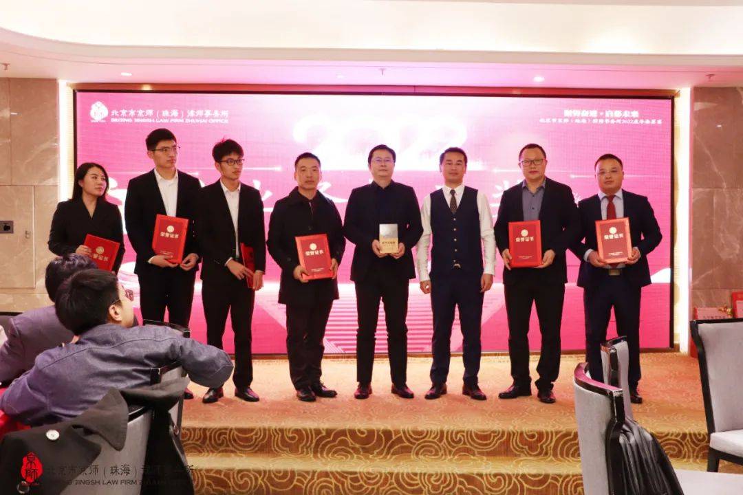 岁月不居,初心依旧。2021年,京师珠海律所有骄傲,有拼搏,有感动,有成长,沉淀过往,所有奋斗终将闪耀。年度表彰环节上,律所对过去一年以来业务突出、兢兢业业、表现优异的同仁予以表彰,分别颁发了“业务标兵奖”、“聚力共赢奖”、“行业贡献奖”、“公益之星奖”、“精益求精奖”、“律政先锋奖”、“未来成长之星奖”等奖项,对他们为律所的建设和发展所做的突出贡献给予表彰。