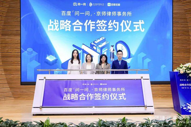 3月29日,京师律所与百度「问一问」在百度大厦举行签约仪式,正式达成全面合作。百度副总裁、百度APP总经理平晓黎,百度知识业务部总经理谈丙南,京师律所高级合伙人封跃平律师、品牌总监邓俊出席了本次会议。未来,京师律所将借助百度「问一问」、百度知道,将权威、专业、优质的法律知识高效触达用户。