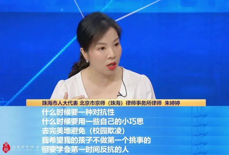在节目中,朱婷婷律师结合相关法律法规和典型案例详细讲述对抗性及避免校园欺凌等问题。朱婷婷律师表示,愿社会各界一起抵制校园欺凌,让每个孩子都沐浴在法治的阳光下,告诉孩子们不做霸凌者,不当受害者,也不要做冷眼旁观者,让我们共同努力对校园欺凌说“不”。