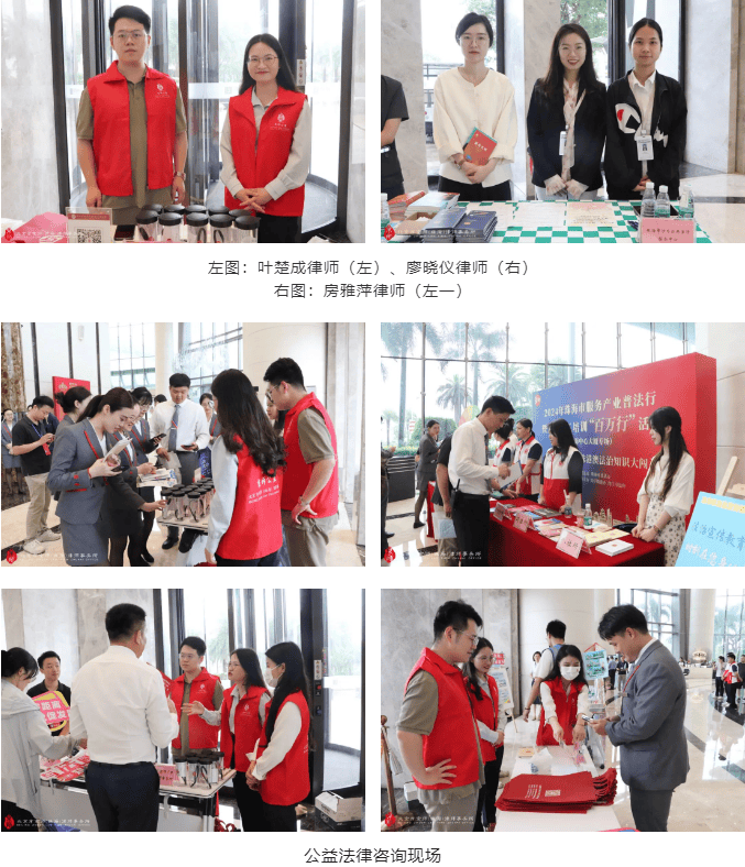 为提高企业员工的法治意识,加强企业法治宣传,法治助企促发展,5月20日下午,由珠海市司法局、香洲区司法局指导,珠海市普法办、湾仔街道办在珠海中心大厦一楼联合举办2024年珠海市服务产业普法行暨企业员工培训“百万行”活动——“一问三答 ”珠港澳法治知识大闯关。北京市京师(珠海)律师事务所积极支持本次活动,房雅萍律师、廖晓仪律师、叶楚成律师等在活动现场为居民们提供公益法律咨询服务。