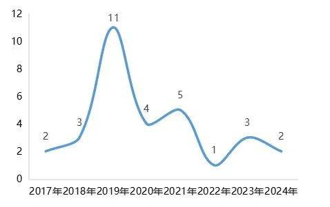 ▲表1.案件数量年份分布图