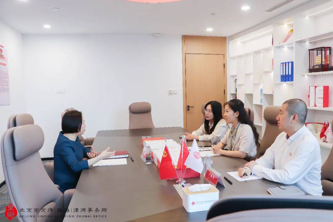 朱婷婷书记围绕理论学习、党建活动、履职情况等详细介绍了京师珠海律所党建工作,她表示,京师珠海党支部积极探索党建与业务融合的有效路径,将党建工作融入律师业务的各个环节,通过开展公益普法讲座、公益法律咨询、企业法治体检等活动,积极发挥党建对业务的引领作用,激励党员律师在党建活动开展与社会服务中发挥更大作用