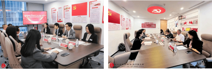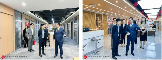 京师珠海律所管委会主任沈继光律师,监委会主任刘琛律师,管委会委员王凤华律师、李莎律师,执行副主任郭诗妍等热情接待并带领来访香港大律师们参观律所办公环境、文化展示区、模拟法庭等,双方在党建室开展座谈会进行深入交流。