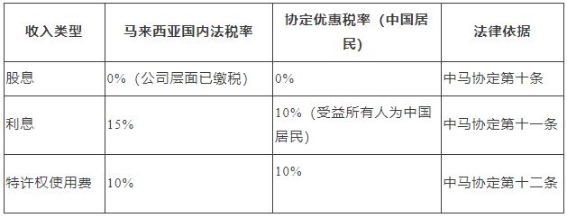 跨境支付(如股息、利息、特许权使用费)的预提税(WHT)是企业关注重点。中马协定对部分所得设定了低于马来西亚国内法的优惠税率(见表3):