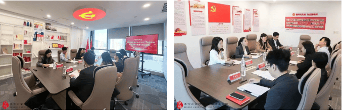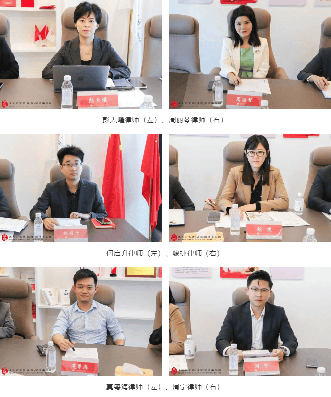 京师珠海律所创始合伙人梁玮,彭天曜律师、何启升律师、莫粤海律师,执行副主任郭诗妍等热情接待并带领来访律师们参观律所办公环境、文化展示区、模拟法庭等,双方在党建室以“打造一流的涉外律师事务所”为主题开展专题调研座谈会。