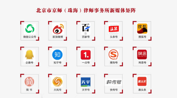 律所官方网站、公众号、头条号、视频号、抖音等新媒体平台,为律师对外宣传提供定制服务,包括个人专访、网络直播、定制名片等,致力于为律师打造专属IP。