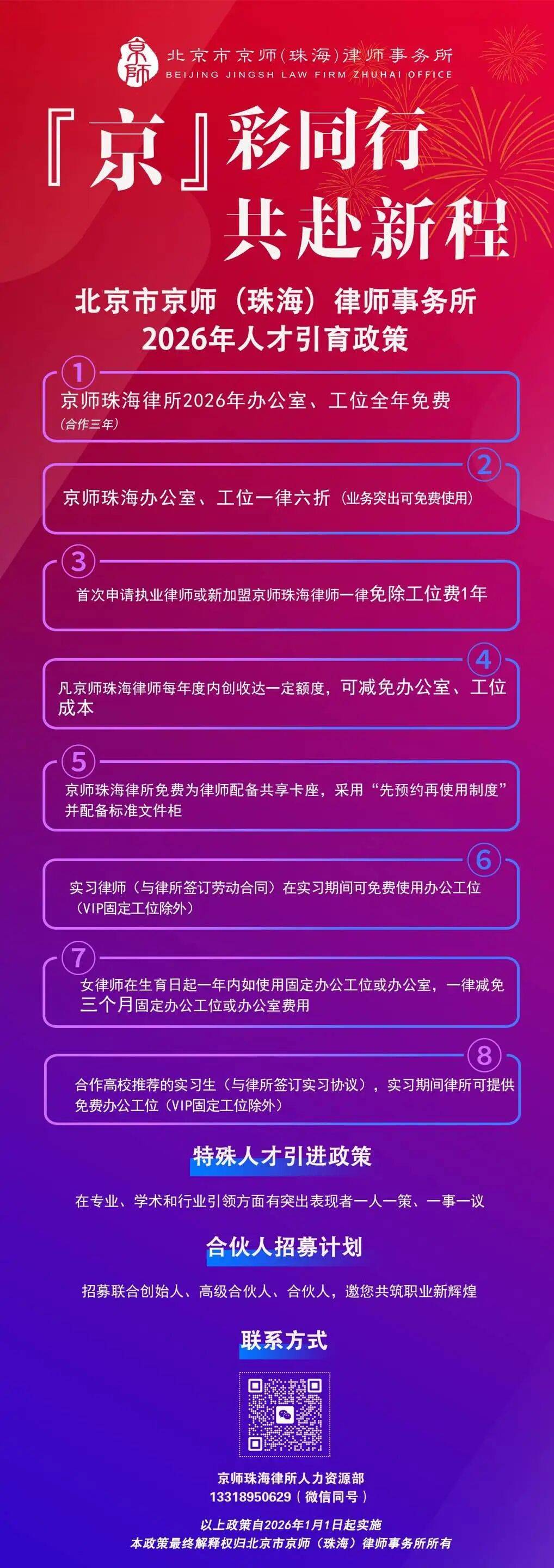 日月驰驱,新程已启。北京市京师(珠海)律师事务所重磅推出2026年人才引育政策,诚邀有志之士携手并肩,共赴「京」彩律途,共创行业新篇。