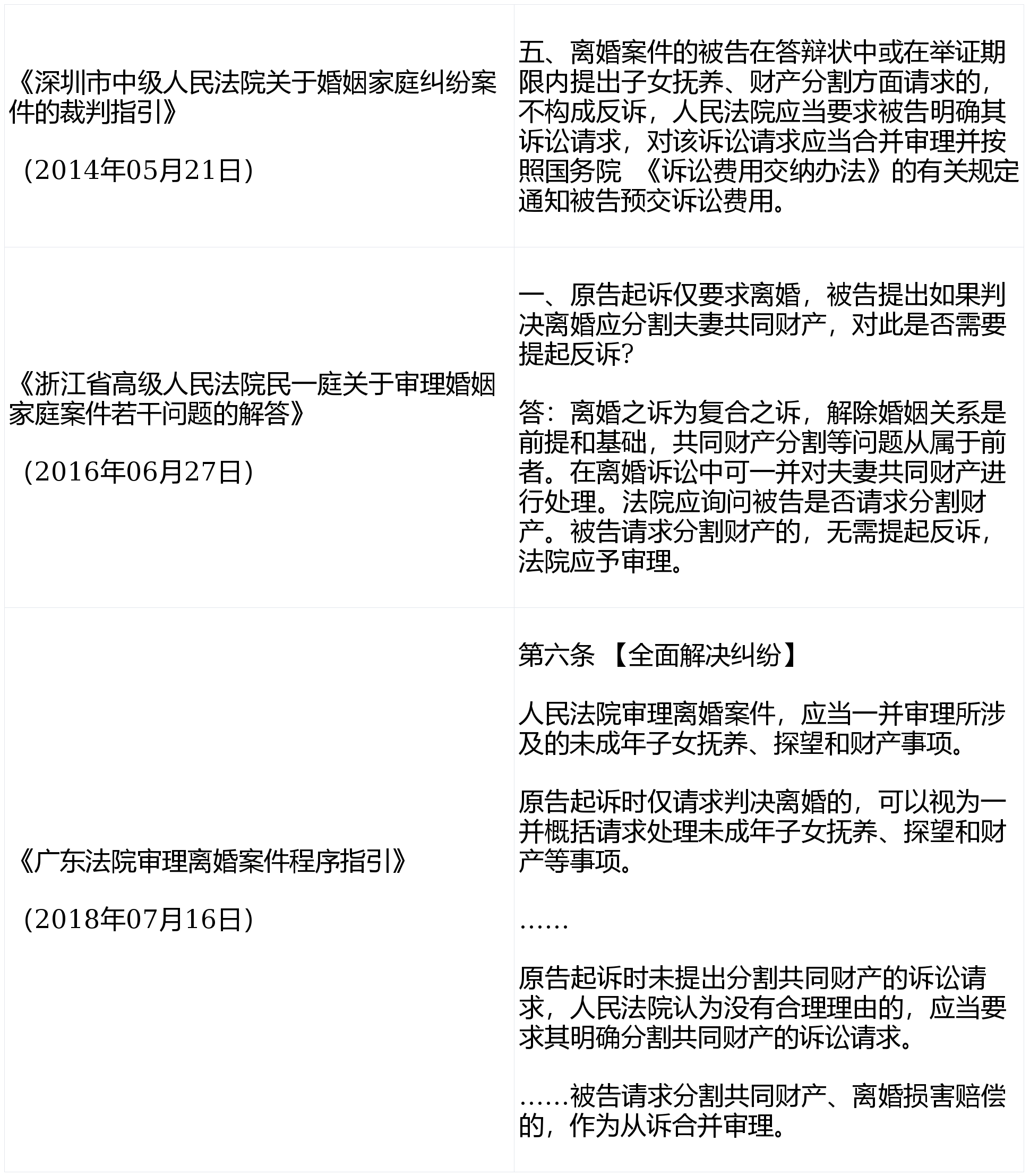 一、离婚诉讼中,为了避免另案起诉的诉累,对于被告方提出的财产分割请求可以一并处理