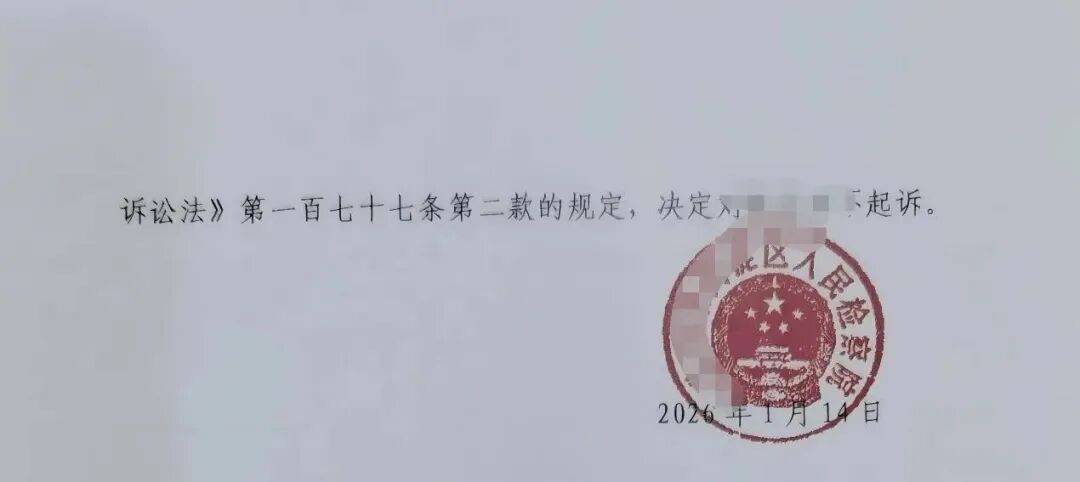 2026年1月13日,某区检察院作出相对不起诉决定书。