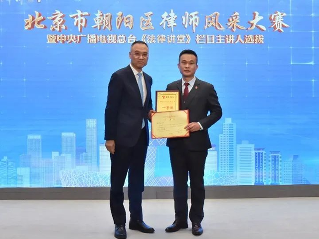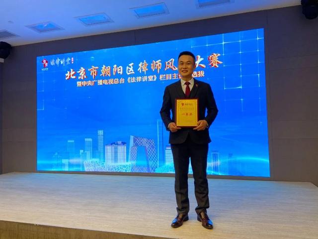 2021年12月3日,朝阳律师风采大赛暨中央广播电视总台《法律讲堂》栏目主讲人选拔大赛成功举办。本次大赛共评选出一等奖1名,二等奖3名,三等奖5名,优秀奖4名。京师律师郭延虎通过预赛、初赛、总决赛层层选拔、激烈角逐,斩获了第一名的优异成绩,成功取得了《法律讲堂》主讲人的资格,打开了公益普法道路上更为广阔的大门。