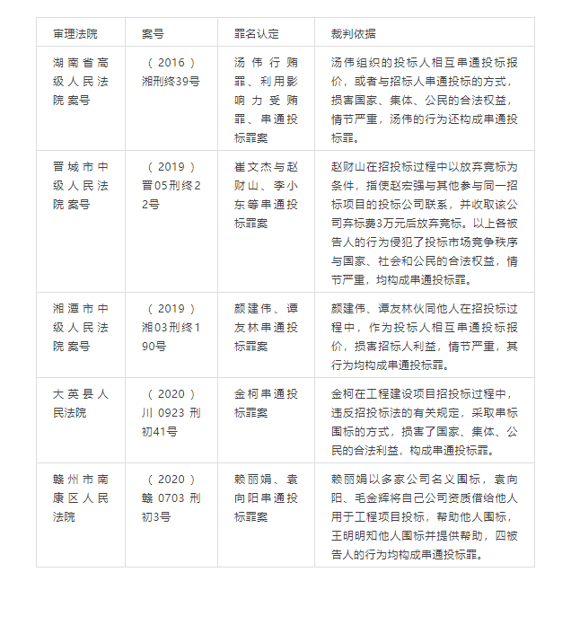 五、司法裁判实务中串通投标罪认定的争议