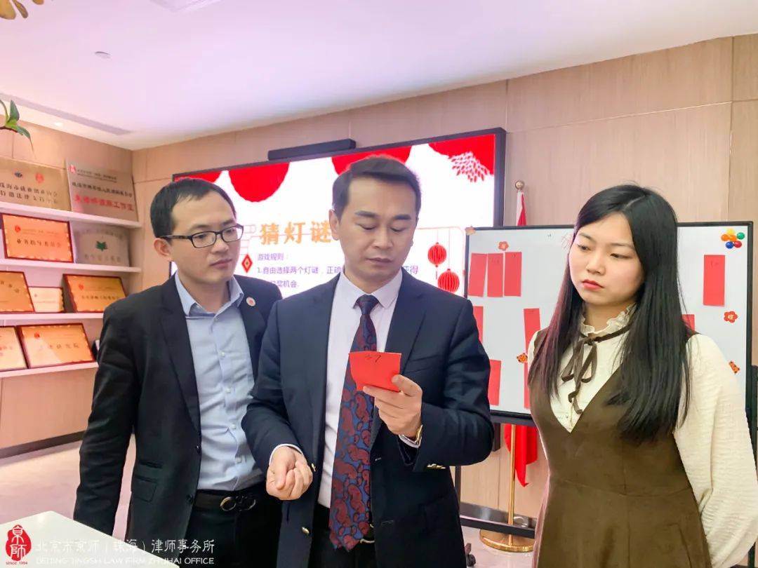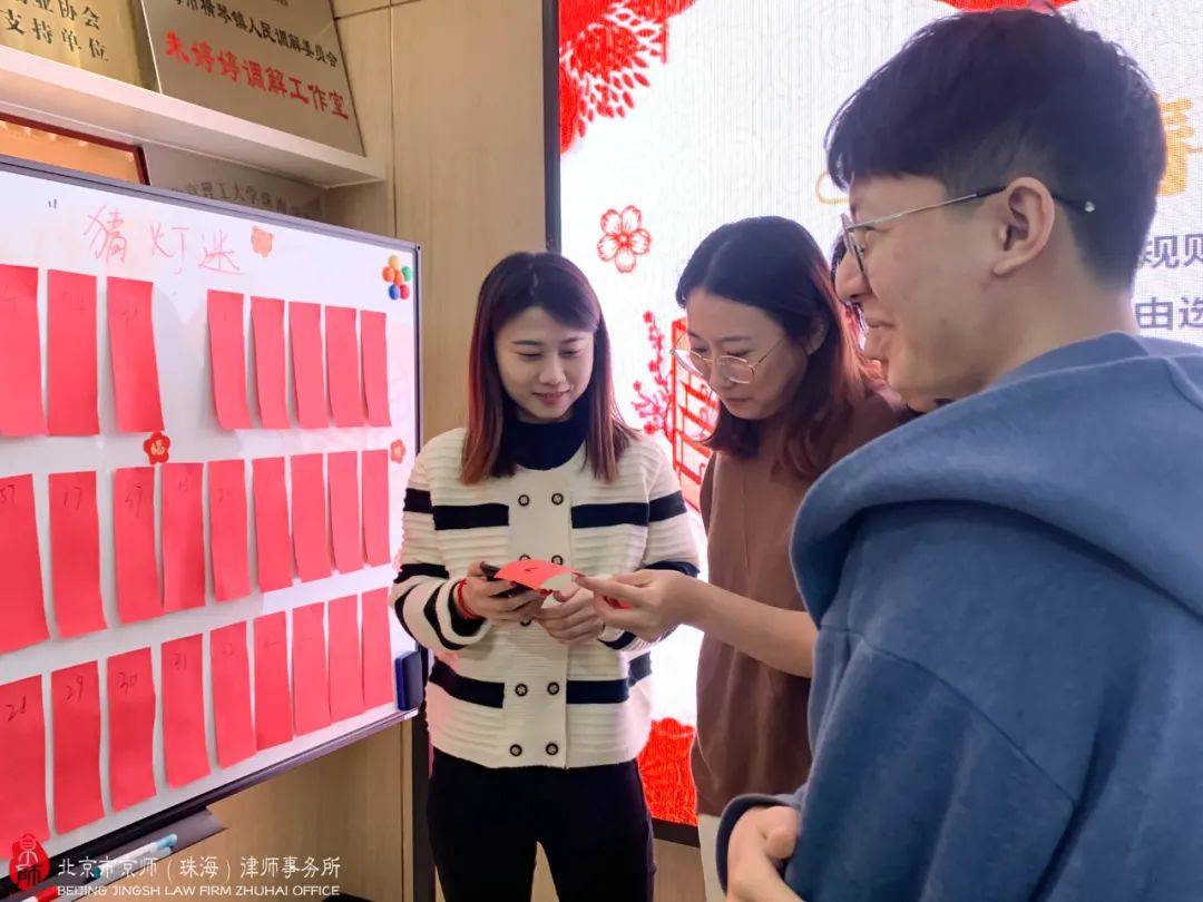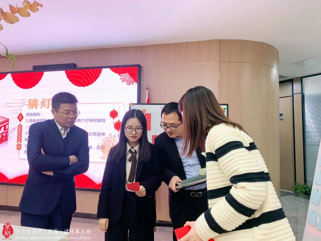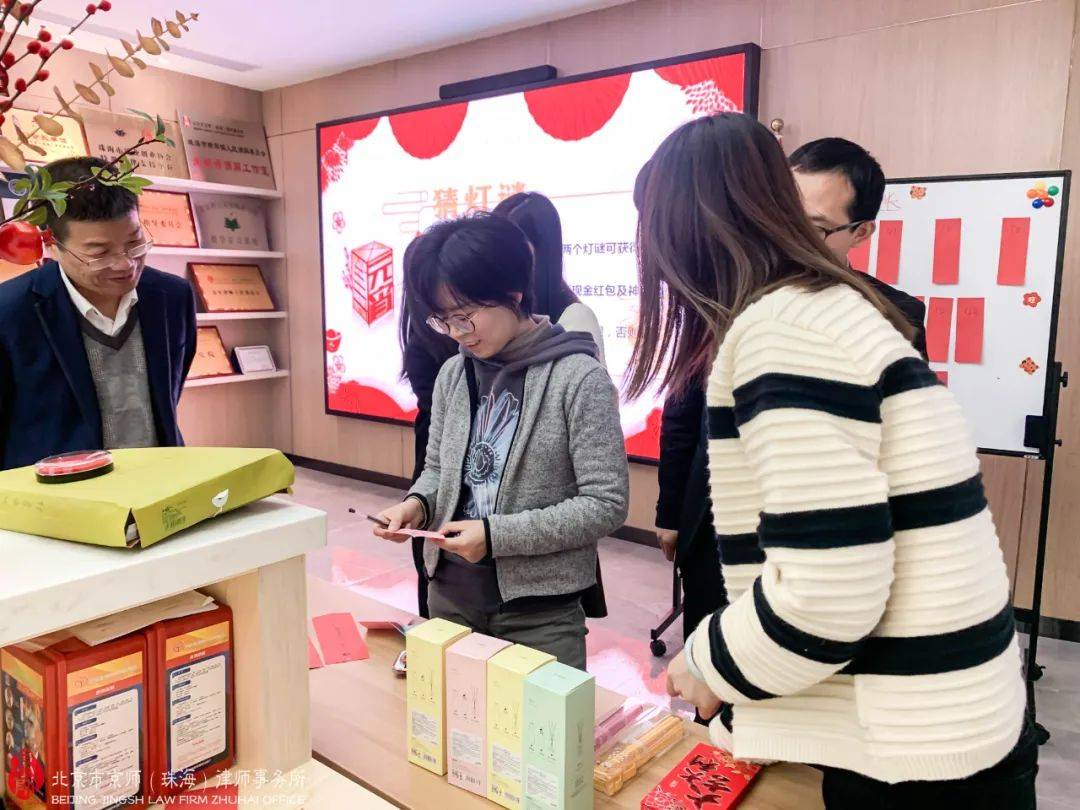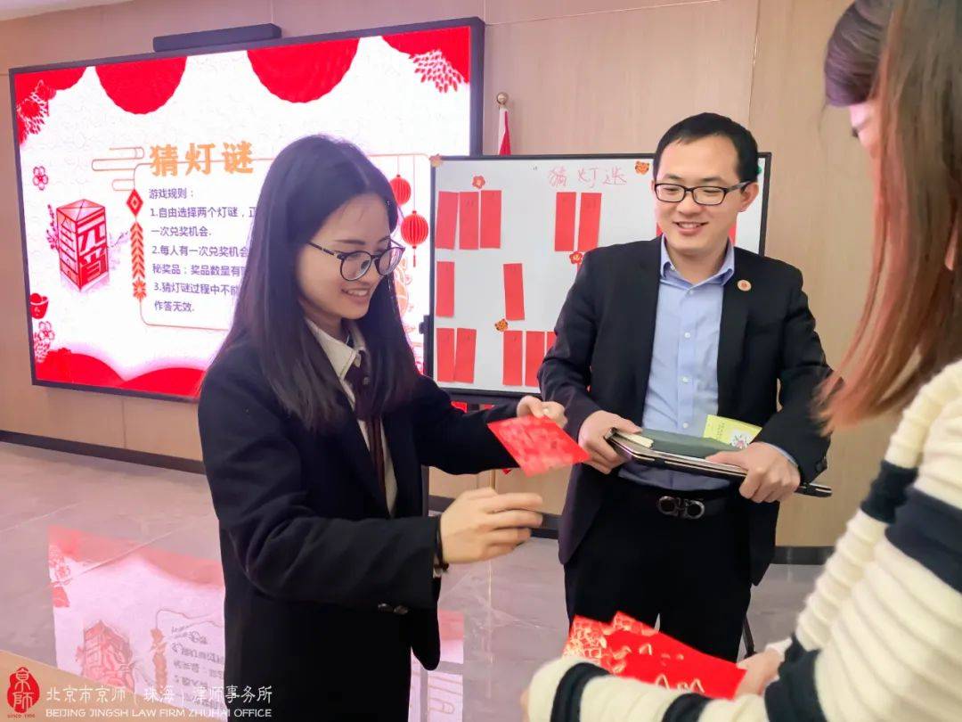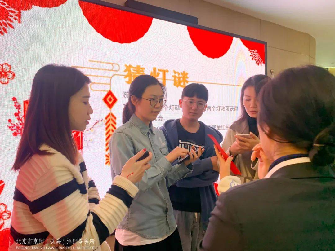 数十条集法律专业性、知识性、娱乐性、趣味性于一体的谜题,京师珠海家人们齐心协力转动脑筋想答案,努力赢取现金红包及神秘大奖。活动现场不断传来欢乐笑声,各位家人们也拉进了彼此间的距离,现场弥漫着浓浓的节日气息,热闹非凡。