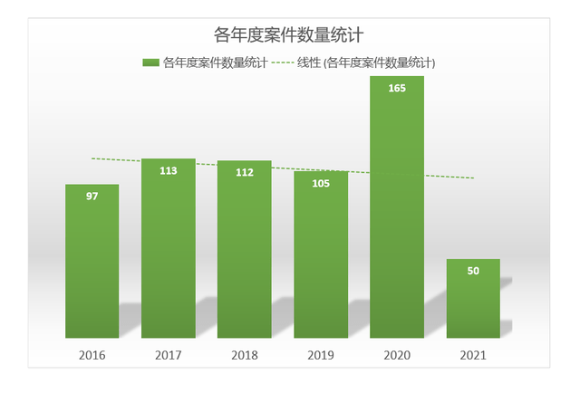 案件数量在2016-2020年度出现较高幅度增长,这与2015、2016年度,九部委(工业和信息化部、发展改革委、科技部、商务部、卫生健康委、应急管理部、国家医保局、国家药监局、国家中医药管理局等九部委)纠正医药购销领域不正之风,将整治“挂靠走票”(指一些没有药品经营资质,但掌握较固定的销售渠道和药品来源的居间人,通过挂靠合法药品经营企业,在支付一定额度的税款或“管理费”之后,将自身药品经营行为“正当”化的活动)、严厉打击虚开发票作为治理重点密不可分。根据目前医疗购销领域对商业贿赂、虚开发票的持续高压打击,湖北、山东、甘肃、广东等各地均爆发出医药虚开大案,部分地区税务机关对医药行业企业的专项检查并入打虚打骗专项检查中。由于药品相较于一般商品,对货物真实性的核算更为复杂,因此医药企业涉嫌虚开的案件办理周期较其他行业也更长,2017年医药行业整治专项行动所涉案件转化进入刑事程序并陆续审结是2020年医药企业危害税收征管罪案件增长较高的重要原因。在2021年中,通过北大法宝以及中国裁判文书网检索平台检索案件,设置高级检索以及普通检索出的案件数量不一致,但是大都徘徊在30件以及70件上下,因此取50件为研究数值。2021年由于疫情的影响以及之前对医药涉税案件的打击,案件数量减少。