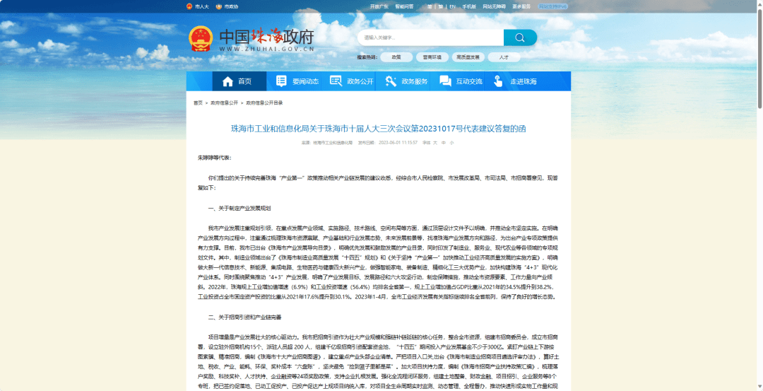 珠海市人大代表、北京市京师(珠海)律师事务所党支部书记朱婷婷律师在珠海市第十届人大第三次会议上提交了《关于持续完善珠海“产业第一”的政策并推动相关产业链发展的议案》(以下简称“议案”),该议案受到珠海市工信局、市金融工作局等相关部门的高度重视。