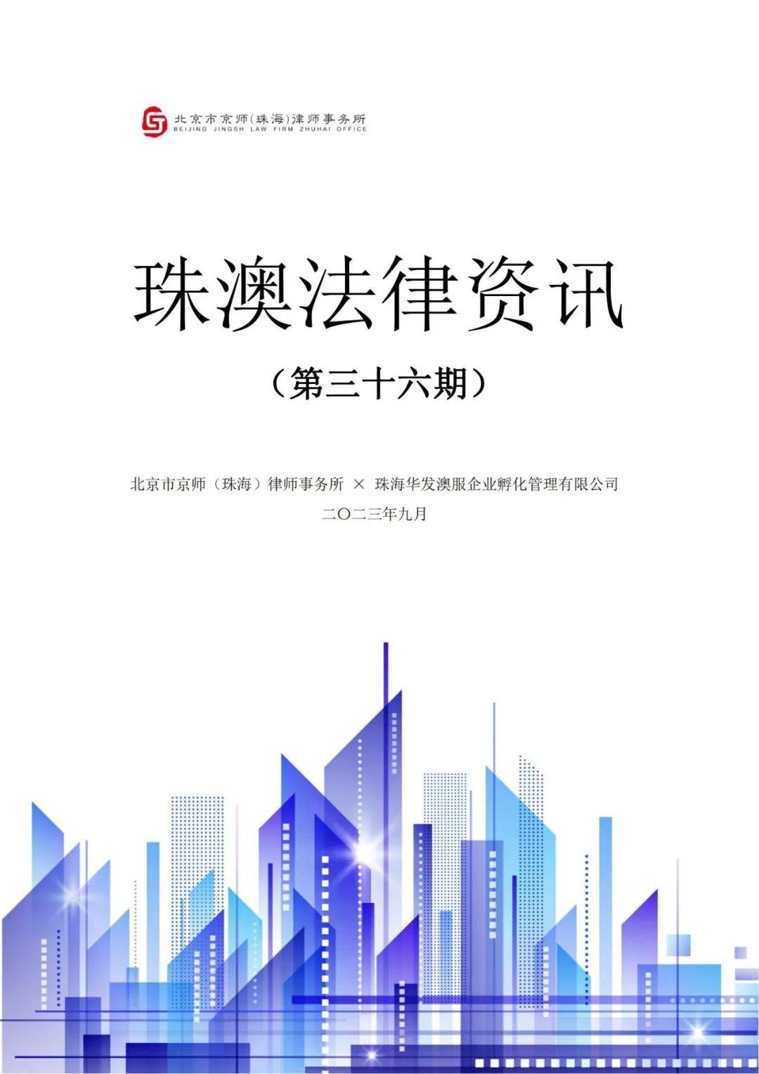 《珠澳法律资讯》由北京市京师(珠海)律师事务所联合珠海华发澳服企业孵化管理有限公司、澳门产业多元十字门中央商务区服务基地共同发布,每月定时发布,及时更新珠澳两地法律动态、新法法规等。