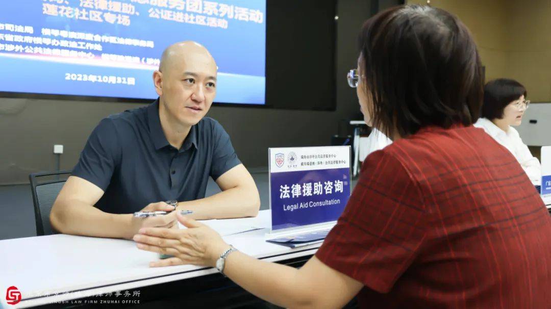 北京市京师(珠海)律师事务所公益委员会副主任孟翔宇律师,招投标委员会副主任周志阳律师分别走进莲花社区和小横琴社区为琴澳居民提供法律咨询服务。