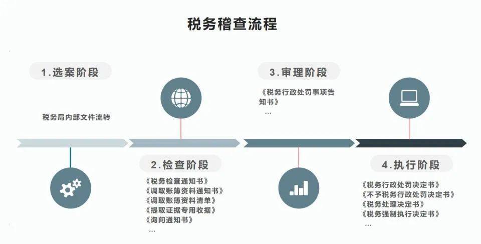 在选案阶段,稽查局会根据上级文件指示,通过对行业、企业风险特征的筛选,选择合适的被稽查对象。根据2023年的税务文件,教育行业、中介行业、医疗美容机构、直播平台行业、农产品行业、废旧物资行业、大宗商品贸易行业、高收入人群股权转让等是税务机关的重点稽查对象。