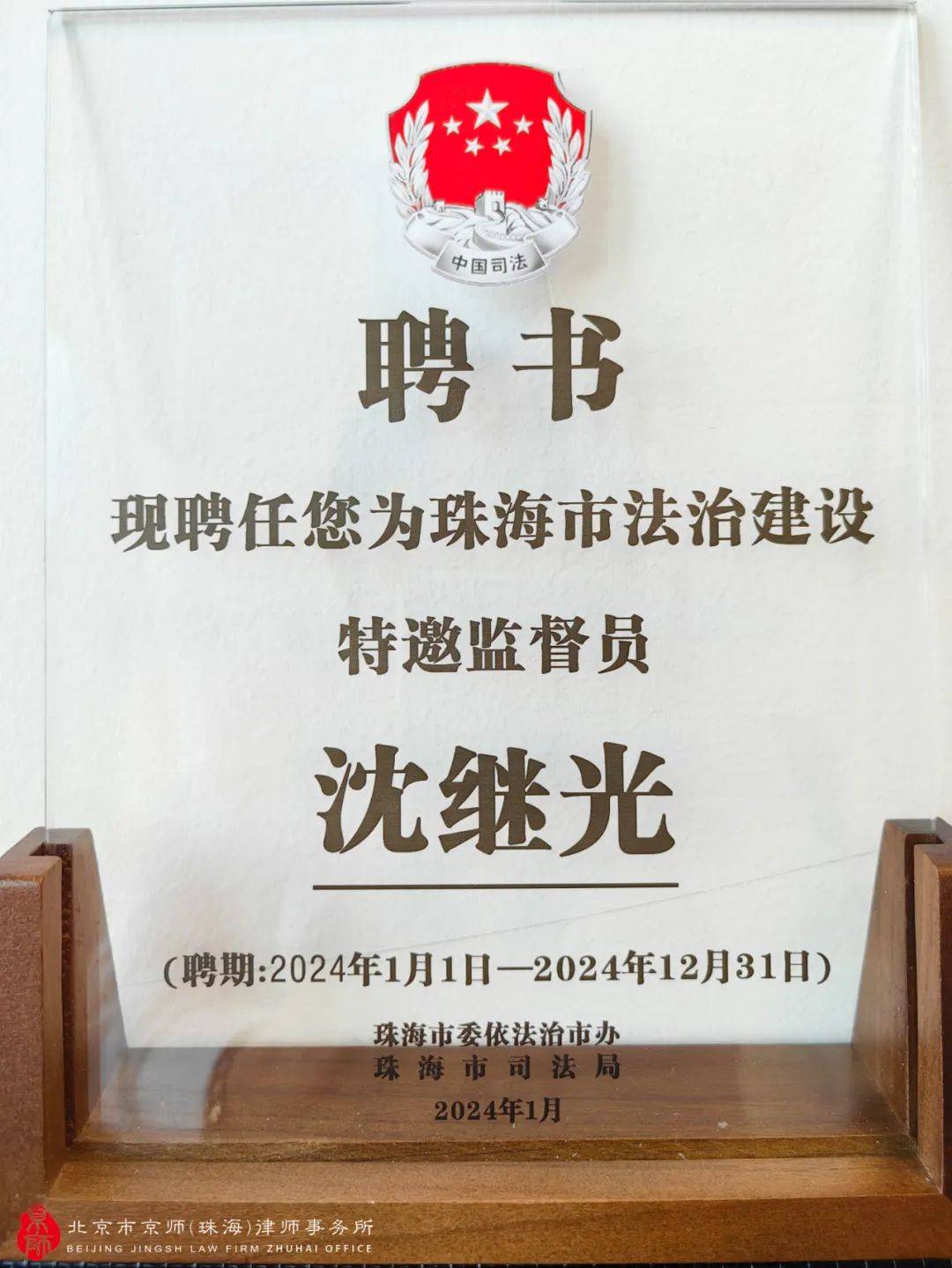 沈继光律师表示,在今后的履职过程中将加强学习、深入一线,积极为民发声,塑造严格、公正、规范、文明的监督员形象,以更强的责任心和使命感做好今后工作,全力助推法治珠海建设。为优化珠海法治化营商环境贡献新力量、开拓新道路、打开新局面。