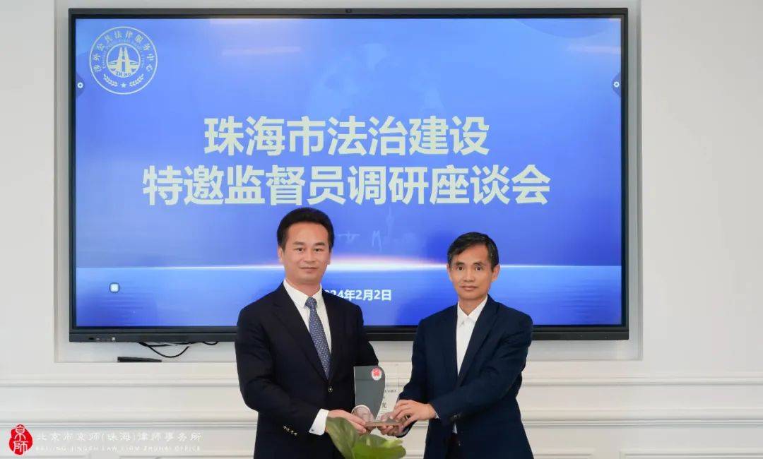 2月2日,珠海市法治建设特邀监督员调研座谈会在涉外公共法律服务中心顺利召开,市委依法治市办成员、市司法局副局长李凯,市司法局四级调研员苏莉莉,市司法局法治督查与调研科二级主任科员胡佳,市司法局法治督查与调研科三级警长谢有方,市司法局法治督查与调研科一级科员翟宇航,涉外中心执行理事兼主任吴振,来自各领域、各类别的首届法治建设特邀监督员参加本次活动。北京市京师(珠海)律师事务所管委会主任沈继光参加本次座谈会并受聘为珠海市首届法治建设特邀监督员。