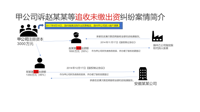 赵某某、郑某某作为滁州甲公司原始股东分别认缴出资额1650万元、1350万元,但其二人均未履行出资义务,根据《最高人民法院关于适用〈中华人民共和国公司法〉若干问题的规定(三)》第十三条第一款规定:“股东未履行或者未全面履行出资义务,公司或者其他股东请求其向公司依法全面履行出资义务的,人民法院应予支持”。第十三条第三款规定:“股东在公司设立时未履行或者未全面履行出资义务,依照本条第一款或者第二款提起诉讼的原告,请求公司的发起人与被告股东承担连带责任的,人民法院应予支持;公司的发起人承担责任后,可以向被告股东追偿”。根据上述规定,因赵某某、郑某某认缴出资总额为3000万元,而实缴出资额均为0元,其二人应当缴纳所认缴的出资额,并应负连带责任。滁州甲公司诉请赵某某、郑某某连带履行出资3000万元义务,符合法律规定,应当支持。滁州甲公司主张张某某、滁州乙公司对其中的1650万元承担连带责任、安徽某某公司对其中的1350万元承担连带责任。因张某某、滁州乙公司、安徽某某公司的真实意思并不是受让赵某某、郑某某的股权,双方签订的《股权转让协议》名为股权转让,实为股权让与担保;2015年6月13日赵某某、郑某某、安徽某某公司及滁州甲公司在给滁州乙公司的《承诺书》中也确认张某某持有滁州甲公司55%股权仅是对滁州乙公司的债权担保。滁州甲公司对此是明知的。因此,应当根据双方之间真实的法律关系确定其权利义务,即按照让与担保法律关系处理。张某某、安徽某某公司只是名义股东,不是真正意义上的股权受让人,不享有股东权利,故其不应承担股东责任。滁州甲公司的该项诉讼请求缺乏事实和法律依据,不予支持。原审法院适用《最高人民法院关于适用〈中华人民共和国公司法〉若干问题的规定(三)》第十八条关于股权转让的相关规定判处,适用法律不当。安徽某某公司及张某某关于其不应对赵某某、郑某某出资不到位的部分承担连带责任的上诉、抗辩理由成立,予以采信。
