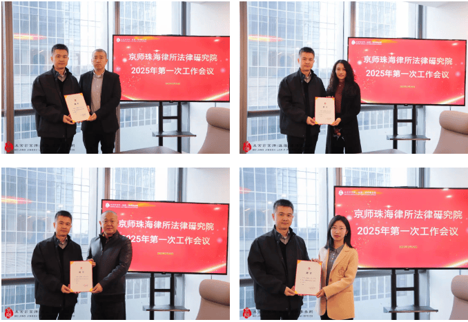 各委员围绕2025年度工作计划包括执业纪律培训、警示案例、投诉处理、完善相关制度等问题展开详细探讨并提出合理化建议,旨在进一步加强律师事务所的风险防控管理,确保律师依法依规执业,维护律师执业合法权利,树立京师珠海律师良好的执业形象。会议最后,沈继光律师为闫磊、李志纯、张满兹律师颁发委员聘书。