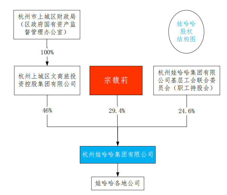 1、娃哈哈集团的大股东是杭州上城区文商旅投资控股有限公司,该公司由上城区财政局出资,系国有独资公司,持有娃哈哈集团 46%的股份。按照《国有企业参股管理暂行办法》第 2 条的规定,国有企业在所投资企业持股不超过 50%且不具备实际控制力的公司,均属于国有参股公司。