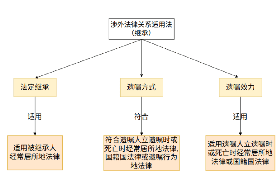 依据我国《涉外民事关系法律适用法》第四章有关继承的规定,法定继承适用被继承人(宗庆后先生)经常居所地法律;遗嘱方式,若符合遗嘱人立遗嘱时或者死亡时经常居所地法律、国籍国法律或者遗嘱行为地法律,该遗嘱均成立;遗嘱效力,适用遗嘱人立遗嘱时或者死亡时经常居所地法律或者国籍国法律。