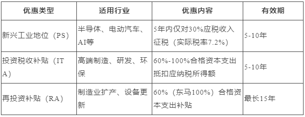 To attract foreign investment, Malaysia has launched the "New Investment Incentive Fund" (NIIF), covering emerging industrial status (PS), investment tax subsidies (ITA), etc. (See Table 4)