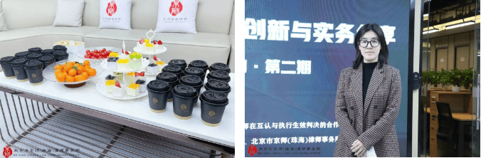 精美茶歇(左)、京师律所涉外刑事法律研究中心副秘书长潇然律师(右)