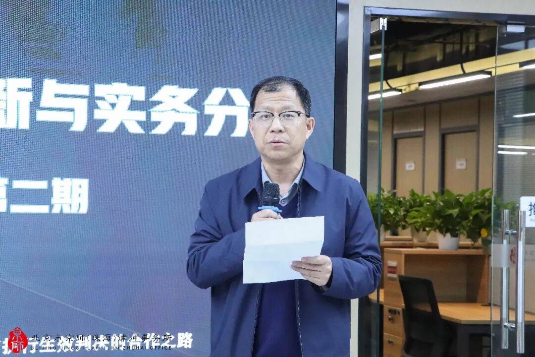 活动伊始,京师珠海律所首席合伙人王云雷律师发表致辞,首先对远道而来的香港何敦律师行合伙人王宇律师表示热烈欢迎,向致力于跨境法律服务的全体同仁致以诚挚问候。他提到,粤港澳大湾区建设作为国家重大战略部署,正加速推进规则衔接与机制对接,商事纠纷解决、刑事合规审查等领域的法律需求日趋复杂专业,破解跨境法律难题、以专业赋能提升服务竞争力,是行业实现业务突破的关键,期待本次活动能为同仁们带来实战干货,助力大家携手把握湾区业务新机遇。