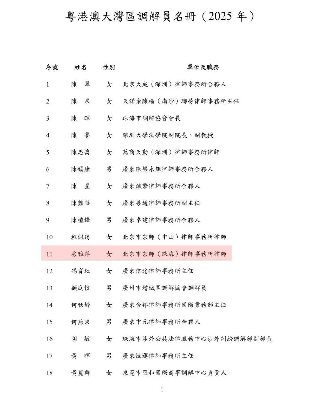 粤港澳大湾区调解员名册