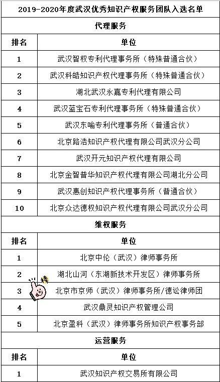 1、2019-2020年度武汉优秀知识产权服务团队入选名单